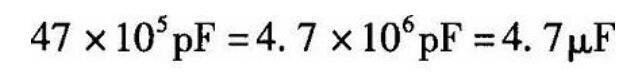 例如,若某一電解電容的代碼為A475,則A表示耐壓值為10V,47表示電容量的有效數(shù)字為47.5表示105。則此電解電容的容量為: